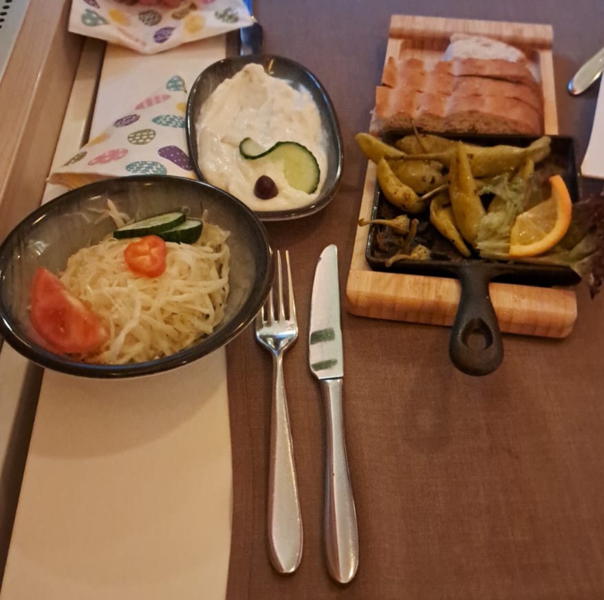 Heute waren wir mit 3 Personen hier und konnten uns zwischen 11 Gerichten entscheiden. Als Vorspeise erhielten wir eine leckere Gemüsesuppe. Alle von uns bestellten Hauptgerichte, es waren drei Verschiedene, waren ansehnlich angerichtet, perfekt gewürzt und somit sehr lecker. Die Bedienung war sehr nett und aufmerksam, das Ambiente im griechischen Stil lädt zum Wohlfühlen ein. Wir können den Mittagstisch in diesem Restaurant weiterempfehlen und kommen gern wieder.